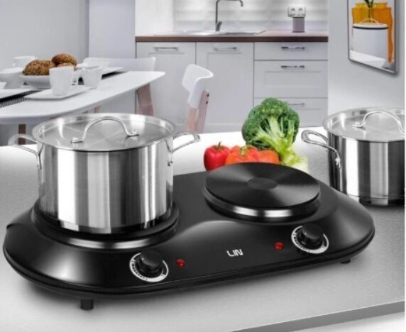 Lin Επιτραπέζια Εστία Εμαγιέ Διπλή Μαύρη