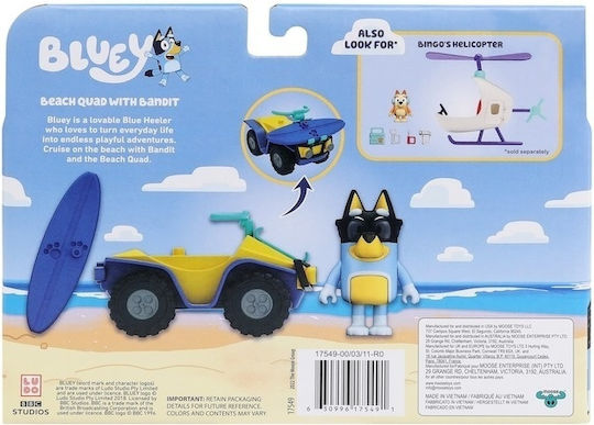 Το Bluey 17549 Vehicle & Figure Beach Quad με ληστή είναι ένα διασκεδαστικό παιχνίδι που φέρνει τη μαγεία του Bluey στο σπίτι. Το σετ περιλαμβάνει μια φιγούρα του Bandit, ο οποίος είναι έτοιμος να απολαύσει την παραλία με το Beach Quad Bike του. Το Beach Quad είναι στολισμένο με γυαλιά ηλίου και έχει σχεδιαστεί για να είναι εύκολο στη χρήση για τα παιδιά προσχολικής ηλικίας.