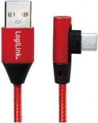LogiLink Angle (90°) / Braided USB 2.0 Cable USB-C male – USB-A Κόκκινο 1m CU0146