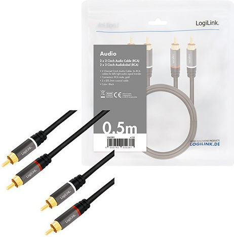 LogiLink Cable 2x RCA male – 2x RCA male 0.5m CA1201