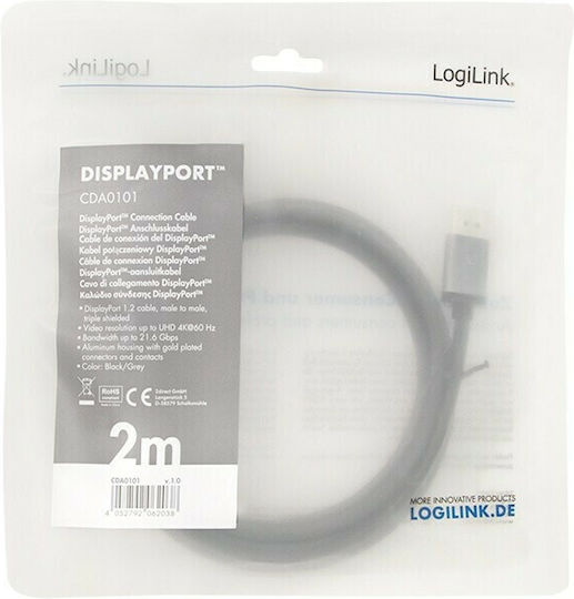 LogiLink Cable DisplayPort male – DisplayPort male 2m Μαύρο (CDA0101)