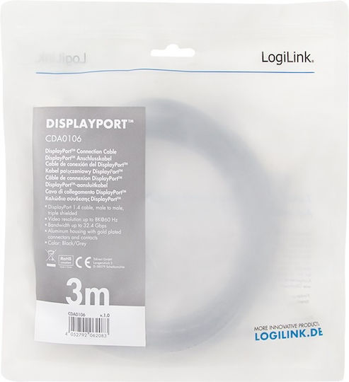 LogiLink Cable DisplayPort male – DisplayPort male 3m Μαύρο (CDA0106)