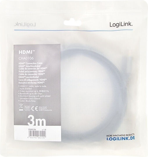 LogiLink HDMI 2.1 Cable HDMI male – HDMI male 3m Χρυσό (CHA0106)