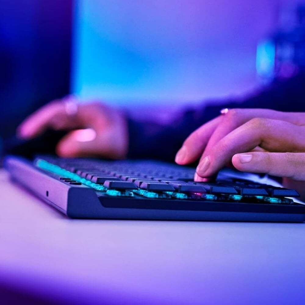 Οι διακόπτες με εργοστασιακή λίπανση, τα καπάκια πλήκτρων χαμηλού προφίλ με διπλή βολή PBT και η κατασκευή με στρώματα που αποσβένουν τον ήχο παρέχουν ομαλότερη αίσθηση, ταχύτερη ενεργοποίηση και ακριβή πληκτρολόγηση με μηδενικούς συμβιβασμούς στην ανθεκτικότητα.
