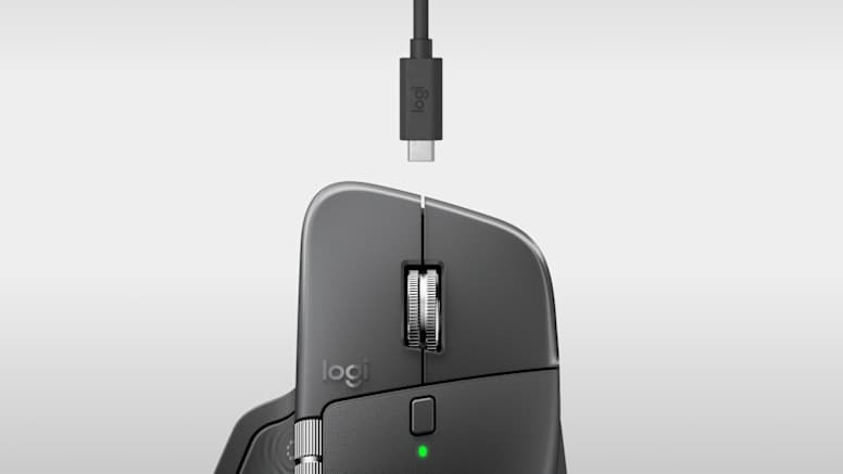 Χάρη στη γρήγορη φόρτιση μέσω USB-C (το καλώδιο φόρτισης δεν περιλαμβάνεται), το MX Master 4 προσφέρει έως και 70 ημέρες λειτουργίας με μία πλήρη φόρτιση και τρεις ώρες χρήσης με γρήγορη φόρτιση ενός λεπτού*. Χρειάζεστε επαναφόρτιση; Απλώς συνδέστε το και συνεχίστε να εργάζεστε—δεν χρειάζεται να κάνετε άβολες παύσεις, μόνο απρόσκοπτη παραγωγικότητα**.