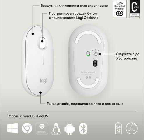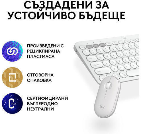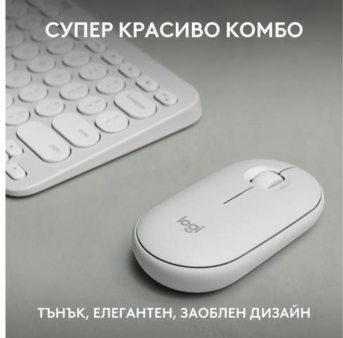 Logitech Pebble 2 Ασύρματο Σετ Πληκτρολόγιο & Ποντίκι Αγγλικό US Λευκό