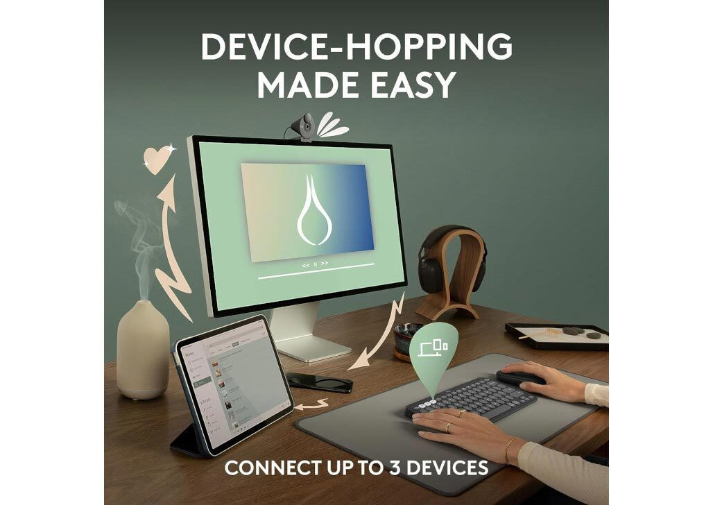 Κάντε εναλλαγή μεταξύ 3 συσκευών με ένα πάτημα των κουμπιών Easy-Switch. Συμβατό με Windows, macOS, iPadOS, iOS και Android.