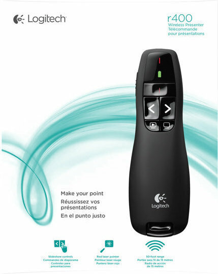 Το Logitech R400 έχει σχεδιαστεί, ώστε να σας βοηθήσει να κάνετε μια εντυπωσιακή παρουσίαση σε ένα σχετικά μικρό χώρο. Η συσκευή διαθέτει δείκτη laser κόκκινου χρώματος που είναι ευδιάκριτος στην πλειοψηφία των φόντων προβολής.
