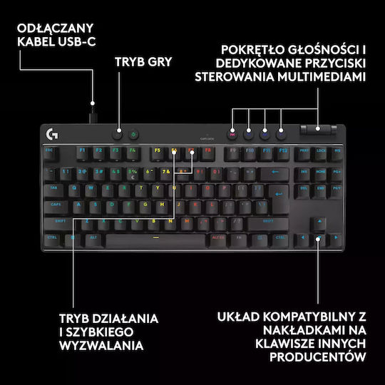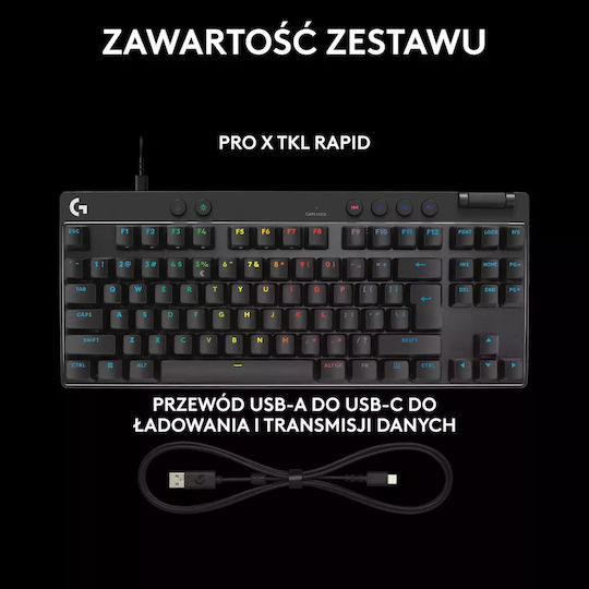 Logitech Pro X TKL Rapid Gaming Πληκτρολόγιο Tenkeyless με Magnetic διακόπτες και RGB φωτισμό (Αγγλικό US)