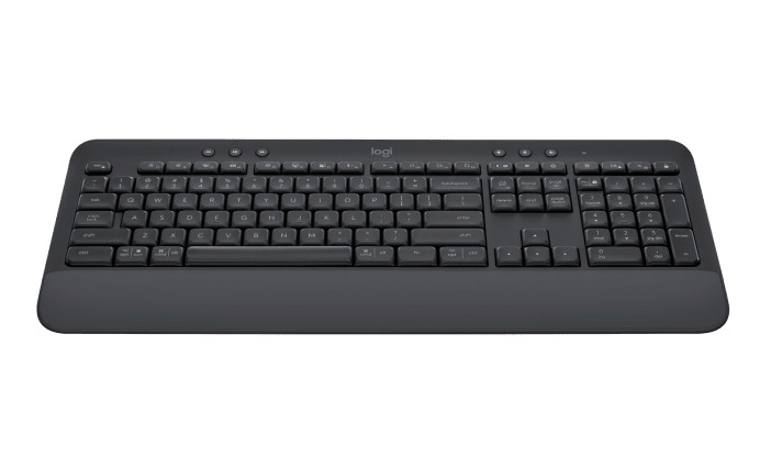 Ασύρματο πληκτρολόγιο πλήρους μεγέθους, Σύνδεση Bluetooth 5.1 & Logi Bolt, ανθεκτικό στις πιτσιλιές με ενσωματωμένο υποκάρπιο στήριγμα.