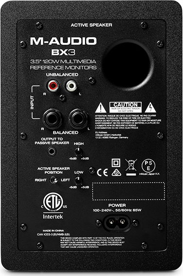 Στην πίσω πλευρά του M-Audio BX3 περιλαμβάνονται χαρακτηριστικά που συνήθως υπάρχουν μόνο σε ακριβά οθόνες στούντιο υψηλών προδιαγραφών.