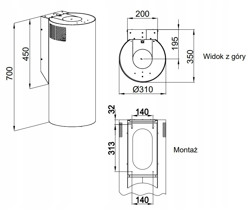 Maan ELBA WPB 731 Καμινάδα 31cm Μαύρη