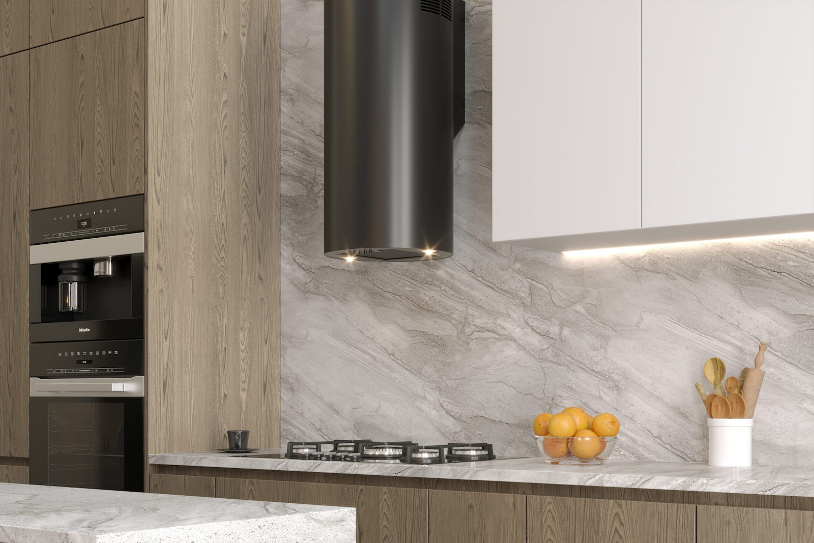 Ο απορροφητήρας της εταιρείας Maan στηρίζεται στον τοίχο.