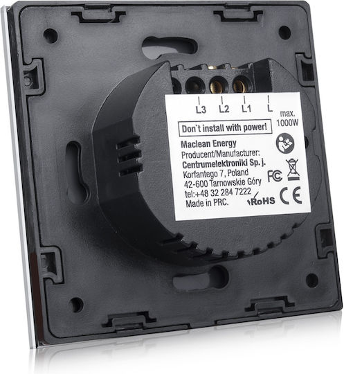 Maclean Energy Χωνευτός Διακόπτης Τοίχου Αφής Μονός με Πλαίσιο Μαύρος MCE702B