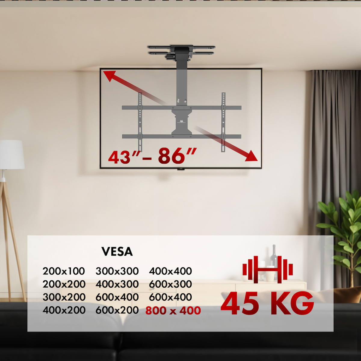• Μέγιστος VESA-τυπος: 800×400