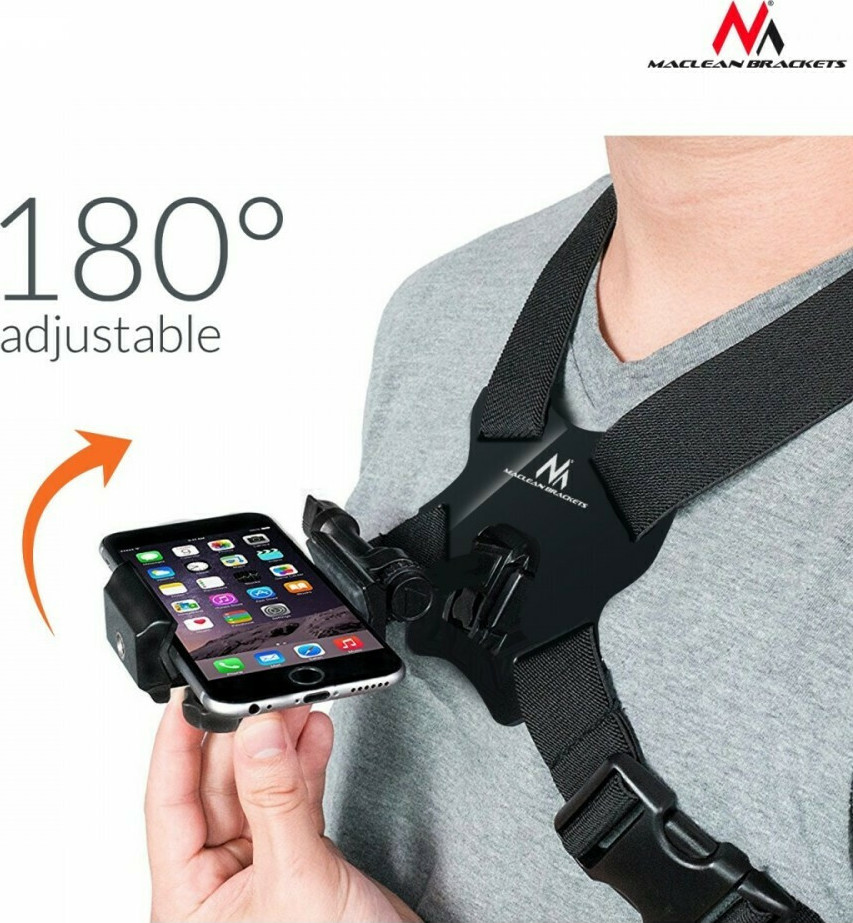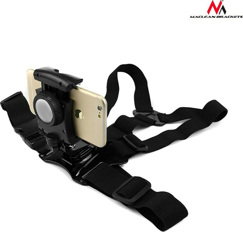 Universal αθλητική βάση στήριξης για τηλέφωνο, κάμερα, κάμερες GoPro και άλλα Maclean MC-773. Η μόνη ζώνη που μπορεί να χρησιμοποιηθεί για την τοποθέτηση smartphone και κάμερα. Υψηλής ποιότητας ζώνη στήθους Maclean MC-773, ανταλλακτικό λουρί στήθους + βάση τηλεφώνου/smartphone. Ιδανική λύση για αθλητικές κάμερες, που σας επιτρέπει να τοποθετήσετε την κάμερα στο στήθος σας. Ο ενσωματωμένος καθρέφτης διευκολύνει την τοποθέτηση του εαυτού σας στο πλαίσιο της κάμερας. Η συσκευή υποστηρίζει τηλέφωνα με πλάτος από 58 mm έως 90 mm και το ενσωματωμένο ειδικό σύστημα κλειδώματος εγγυάται ασφαλή τοποθέτηση του smartphone σας στη βάση.