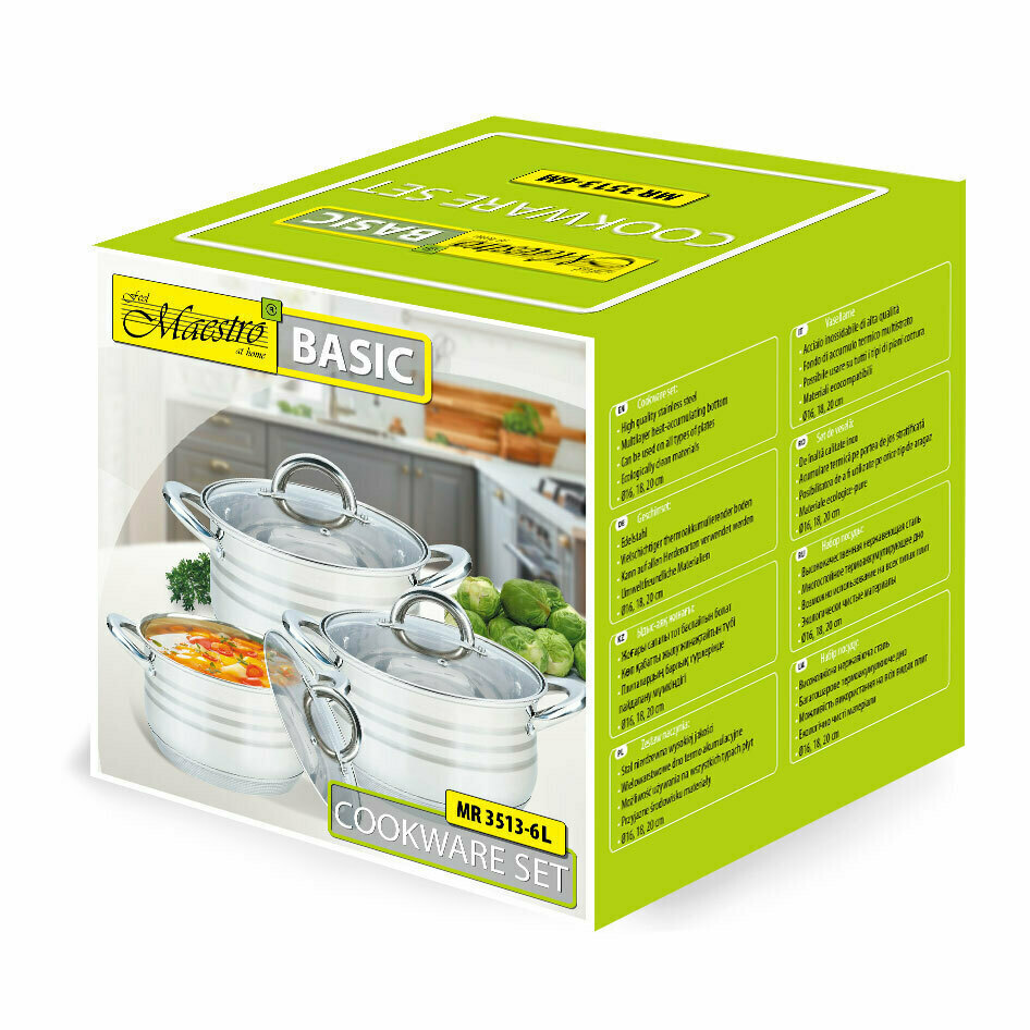 Maestro Σετ Κατσαρόλες από Ανοξείδωτο Ατσάλι 6τμχ