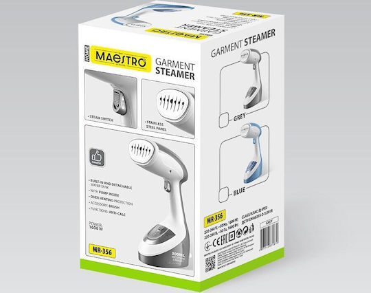 Maestro MR-356-GREY Ατμοκαθαριστής Ρούχων Χειρός 1600W με Δοχείο 300ml Γκρι