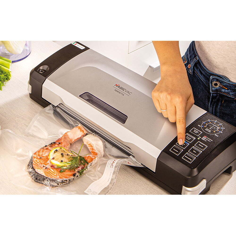 Η Magic Vac Perfetta είναι μια υψηλής απόδοσης συσκευή vacuum με καινοτόμο ψηφιακό έλεγχο vacuum. Διαθέτει τεχνολογία “ActiSeal3D” για άριστο σφράγισμα και λειτουργία “MARINATING” για γρήγορη μαρινάρισμα τροφίμων.