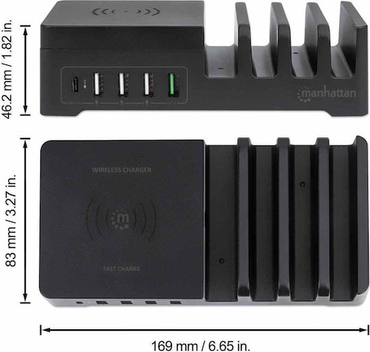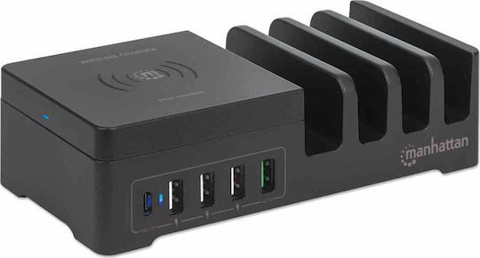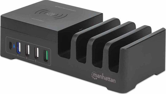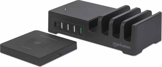 Manhattan Βάση Φόρτισης με 4 Θύρες USB-A και Θύρα USB-C 55W σε Μαύρο χρώμα (102230)