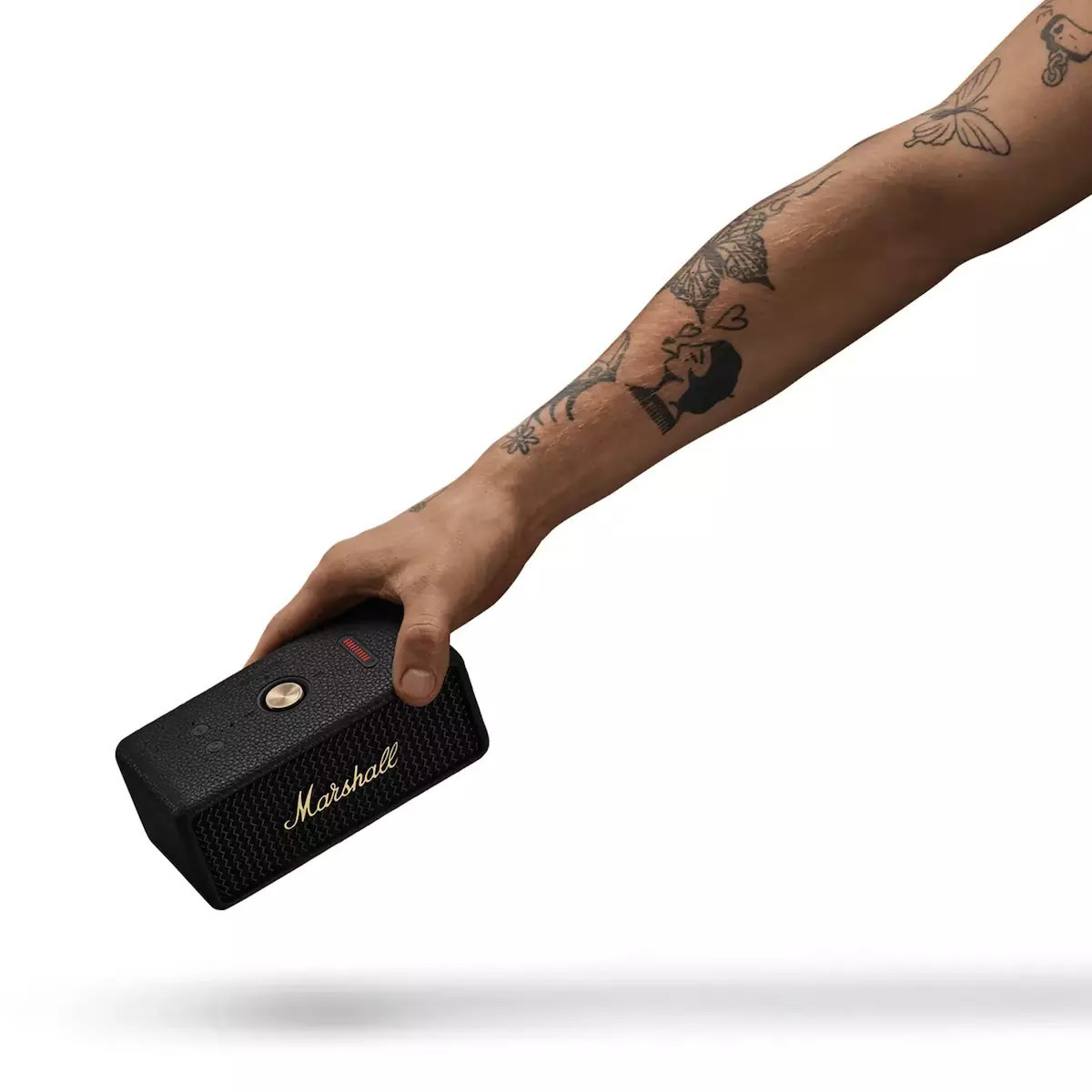 Δεν είναι όλα τα ηχεία ίδια. Ορισμένα μπορούν να παρέχουν το soundtrack της ζωής σας ενώ ταυτόχρονα τα κακομεταχειρίζεστε, δέχονται σκόνη, βρωμιά και βροχή. Το Emberton III κάνει ακριβώς αυτό και ακόμα περισσότερα. Δεν είναι για επίδειξη, αλλά εκεί για να συμμετέχει στο πάρτι, όπου κι αν αυτό σας πάει. Μπορείτε να το πετάξετε μέσα σε ένα σάκο, να το ρίξετε στο πίσω κάθισμα του αυτοκινήτου σας, να το πάρετε μαζί σας σε μια διαδρομή σε όλη τη χώρα ή να πάτε στην παραλία, εντελώς χωρίς άγχος. Με το Emberton III θα απολαμβάνετε απόλυτο ήχο 360°. Φτιαγμένο με τη λειτουργία True Stereophonic όπου και αν το τοποθετήσετε, θα ακούγεται τέλεια εξαιτίας αυτής της μοναδικής μορφής πολυκατευθυντικού ήχου από τη Marshall. Όπου κι αν στέκεστε, η μουσική θα ακούγεται ζωντανή, ισορροπημένη και δυνατή. Ακριβώς όπως θα έπρεπε. Με 32+ ώρες φορητού χρόνου αναπαραγωγής και χαρακτηριστικά διατήρησης της μπαταρίας που έχουν κατασκευαστεί για σχεδόν ατελείωτες περιστάσεις ακρόασης, μπορείτε να συνεχίσετε να παίζετε τη μουσική σας σε επανάληψη. Το νέο Emberton, αναβαθμίστηκε σχεδιαστικά για να είναι πιο απλό και βολικό στη χρήση, παραμένοντας παράλληλα πιστό στη rock ‘n’ roll κληρονομιά του. Η κλασική γρίλια, το ανάγλυφο κάλυμμα και η εμβληματική γραφή Marshall παραπέμπουν στους θρυλικούς ενισχυτές με το πρόσθετο πλεονέκτημα του ενσωματωμένου μικροφώνου. Ελαφρύ, φορητό, και απίστευτά ανθεκτικό, καθώς διαθέτει πιστοποίηση προστασίας από σκόνη και νερό IP67 (μπορείτε να το βυθίσετε σε νερό 1 m (3 ft) για έως και 30 λεπτά) το Emberton III προσφέρει μια αξεπέραστη εμπειρία ακρόασης on the go, οποιαδήποτε στιγμή, οπουδήποτε βρεθείτε!
