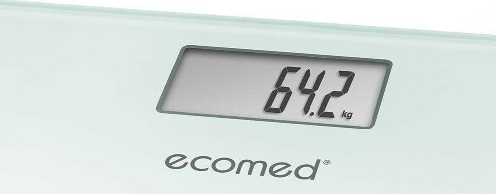 Η ψηφιακή ζυγαριά Medisana Ecomed PS 72E είναι γυάλινη και λειτουργεή με το πάτημα ενός κουμπιού.