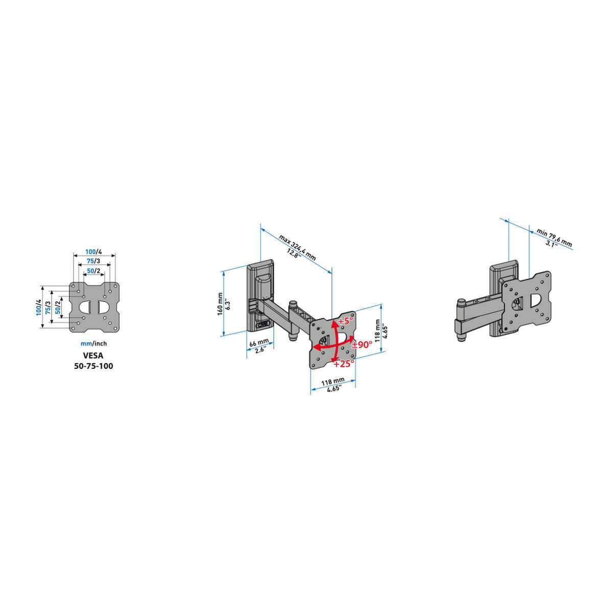 • Συμβατό: VESA 50 x 50 mm, VESA 75 x 75 mm, VESA 100 x 100 mm