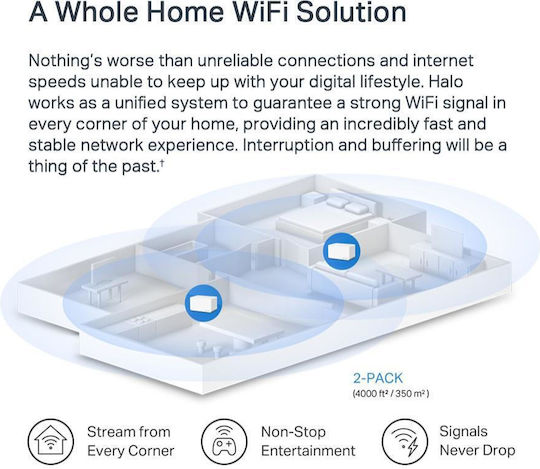 Ενιαίο δίκτυο για πραγματικό Seamless Roaming σημαίνει ότι οι μονάδες Mercusys Halo H70X συνεργάζονται για να σχηματίσουν ένα ενοποιημένο δίκτυο. Το τηλέφωνο ή το tablet σου συνδέεται αυτόματα με το ταχύτερο Halo H70X καθώς μετακινείσαι στο σπίτι σου, δημιουργώντας μια πραγματικά απρόσκοπτη εμπειρία Wi-Fi (η απόδοση ενδέχεται να διαφέρει ανάλογα με τη συσκευή πελάτη).