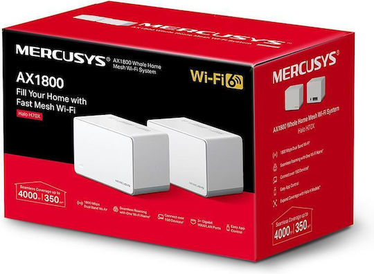 Mercusys Halo H70X v1 WiFi Mesh Network Access Point Wi‑Fi 6 Dual Band (2.4 & 5GHz) σε Διπλό Kit