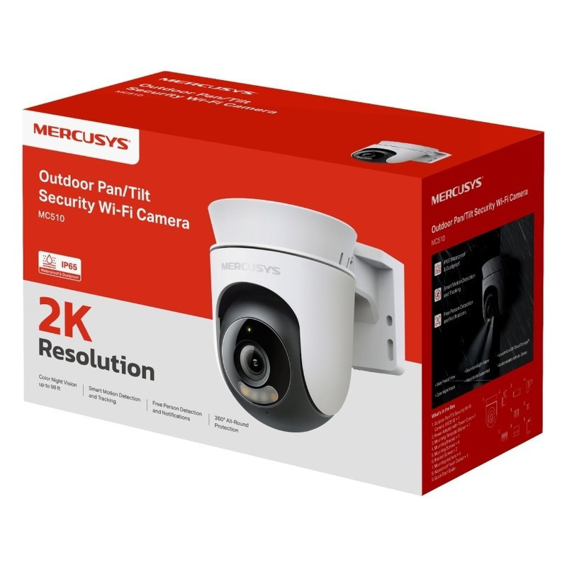Η Mercusys MC510 είναι μια κάμερα παρακολούθησης κατάλληλη για εξωτερικούς χώρους, με αδιάβροχη κατασκευή που επιτρέπει τη λειτουργία της ανεξαρτήτως καιρικών συνθηκών. Έχει ανάλυση εικόνας 3MP, προσφέροντας καλύτερη ευκρίνεια σε σύγκριση με κάμερες ανάλυσης 1080p, ιδανική για περιοχές όπου απαιτείται μεγαλύτερη λεπτομέρεια, όπως οι είσοδοι και οι χώροι ελέγχου.