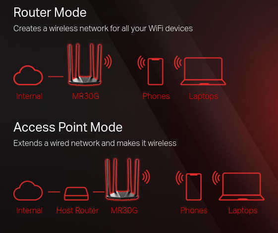 Ωστόσο, με την τεχνολογία MU-MIMO, ο MR30G επικοινωνεί με πολλαπλές συσκευές ταυτόχρονα, ώστε οι συνδεδεμένες συσκευές να επιτυγχάνουν ταχύτερες ταχύτητες από τους τυπικούς δρομολογητές AC, βελτιώνοντας την αποδοτικότητα του δικτύου.