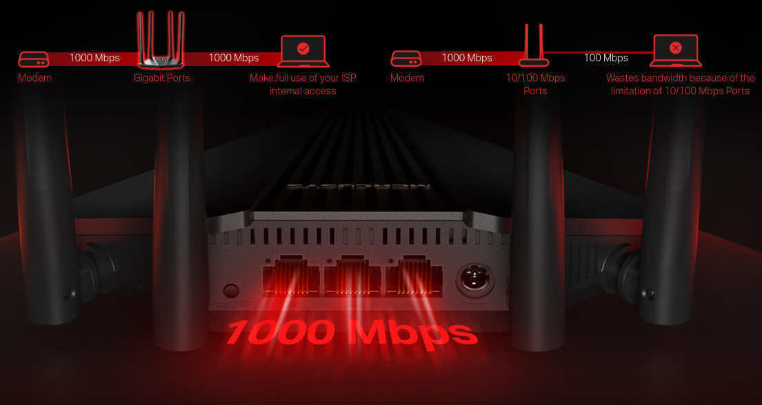 Εξοπλισμένο με θύρες πλήρους Gigabit, οι οποίες είναι 10× ταχύτερες από τις θύρες Ethernet, το MR30G μεταφέρει δεδομένα με ιλιγγιώδεις ταχύτητες για κορυφαίες επιδόσεις. Συνδέστε τους υπολογιστές σας, τις IPTV και τις κονσόλες παιχνιδιών στο MR30G για ισχυρή σταθερότητα.
