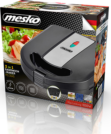 Η τοστιέρα, από την εταιρία Mesko, έχει ισχυρή ισχύ 1000 W και 3 διαφορετικές αφαιρούμενες αντικολλητικές πλάκες, για τοστ, βάφλες και ψήσιμο στο grill. Επιπλέον, είναι εξοπλισμένη με αυτόματο έλεγχο της θερμοκρασίας, μη θερμαινόμενη λαβή με κλιπ κλεισίματος και αντιολισθητική βάση για μέγιστη σταθερότητα.