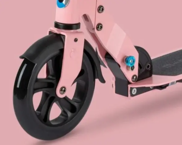 Το ενσωματωμένο σύστημα απόσβεσης κραδασμών λειτουργεί σαν ποδήλατο για να απορροφά τα χτυπήματα στον δρόμο. Οι μεγάλοι τροχοί PU 180 mm προσφέρουν μέγιστη ταχύτητα χωρίς να προσθέτουν όγκο ή βάρος. Το τελικό αποτέλεσμα – μια ομαλή, γρήγορη βόλτα.