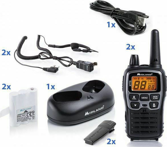 Midland XT70 Ασύρματος Πομποδέκτης PMR 0.5W με Μονόχρωμη Οθόνη Σετ 2τμχ Σε Ασημί Χρώμα