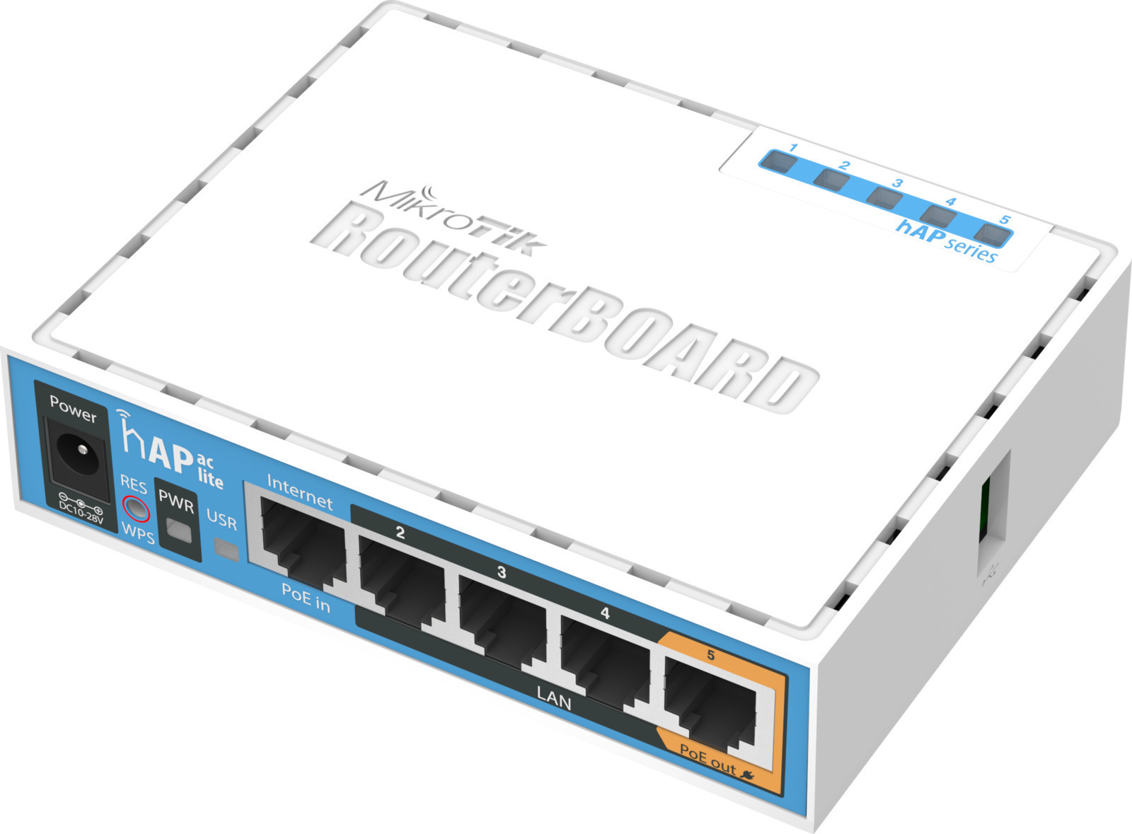 Το hAP ac lite είναι ένα νέο μικρό σε μέγεθος Ασύρματο Router για το σπίτι ή το γραφείο με δυνατότητα να λειτουργεί ταυτόχρονα σε δύο συχνότητες 2.4GHz & 5GHz, διαθέτει 5 θύρες ethernet οπου κάθε μία μπορεί να παραμετροποιηθεί διαφορετικά, επίσης διαθέτει μια θύρα USB.