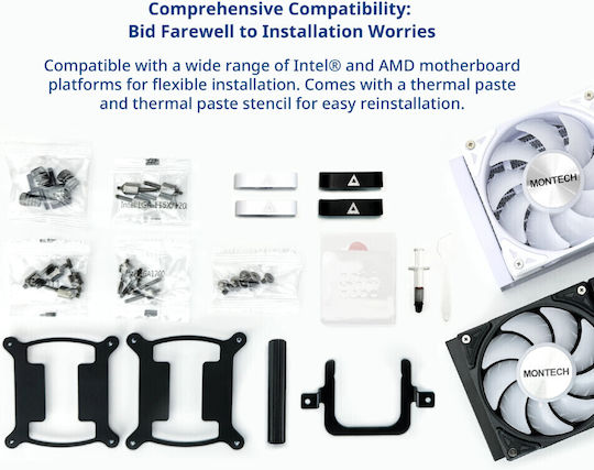 Montech HyperFlow Υδρόψυξη Επεξεργαστή Τριπλού Ανεμιστήρα 120mm για Socket AM4/AM5/1700/1200/115x με ARGB Φωτισμό Λευκή