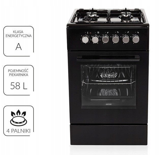 MPM Ελεύθερη με Εστίες Υγραερίου Μαύρη MPM-56-KGM-12B