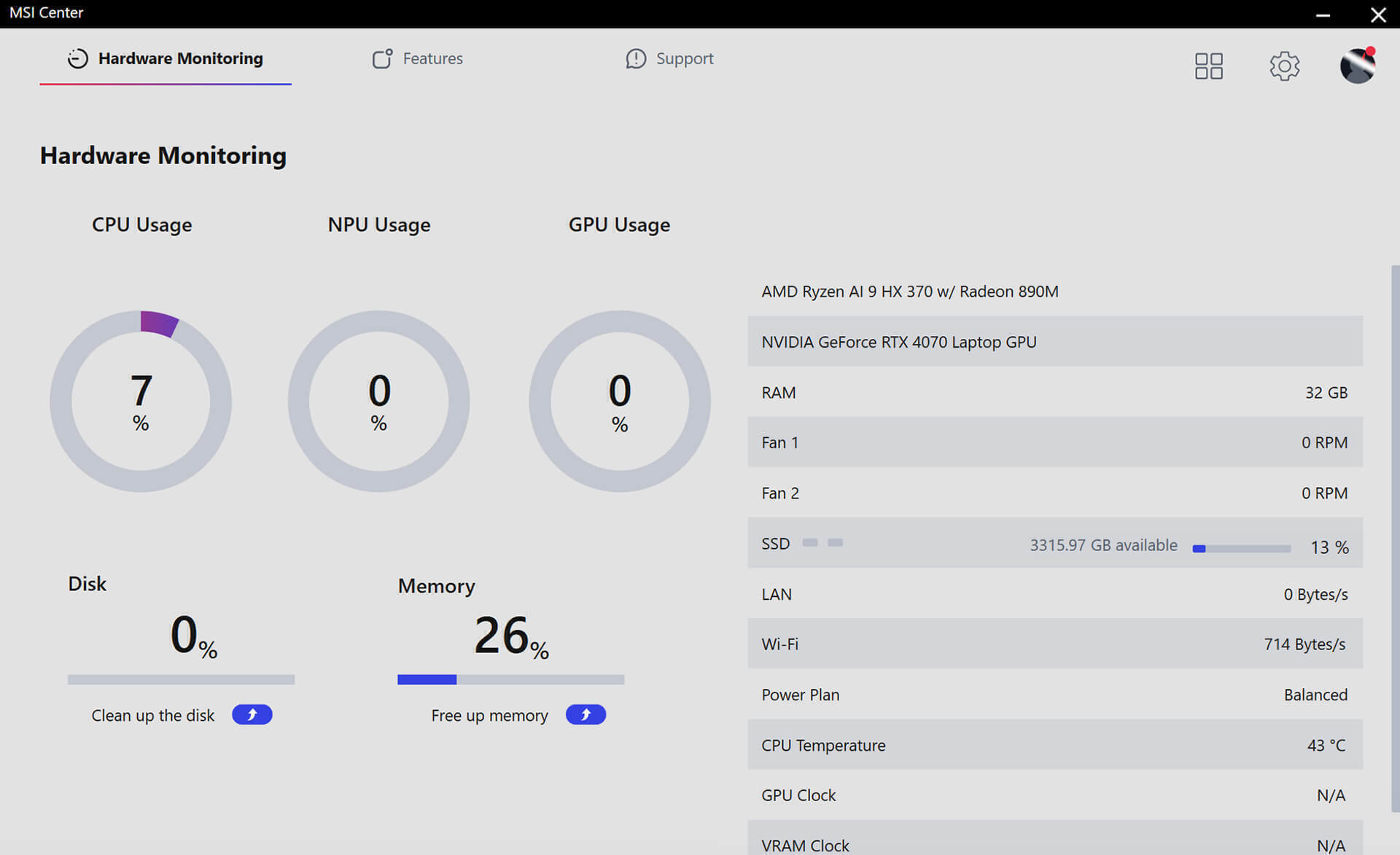 Το αποκλειστικό λογισμικό MSI Center σάς επιτρέπει να παρακολουθείτε, να τροποποιείτε και να βελτιστοποιείτε τα προϊόντα MSI σε πραγματικό χρόνο.