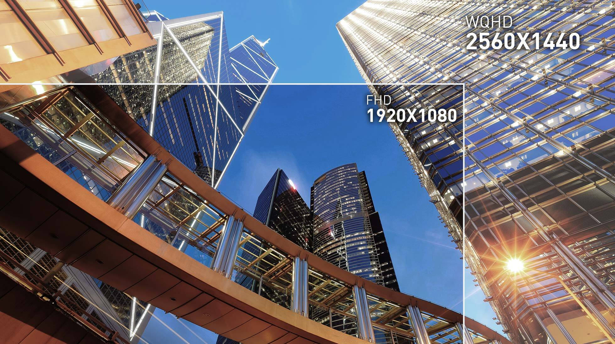 Η ανάλυση 2560 x 1440 (WQHD) αυξάνει την επιφάνεια προβολής και εργασίας, όχι μόνο δείχνοντάς σας περισσότερα, αλλά και προσφέροντας βελτιωμένη αναγνωσιμότητα, πιο ζωντανά τρισδιάστατα εφέ και αισθητική ομορφιά στη ζωή σας.