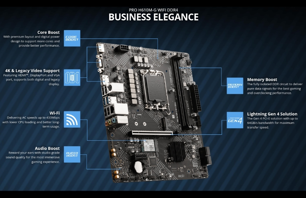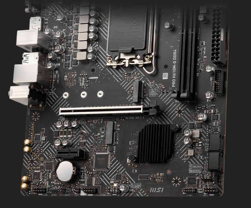 Η μητρική κάρτα MSI Pro H610M-G WIFI DDR4 είναι σχεδιασμένη για να υποστηρίζει επεξεργαστές Intel 12ης και 13ης γενιάς, όπως οι επεξεργαστές Intel Alder Lake που έχουν socket LGA 1700. Επομένως, απευθύνεται σε χρήστες που επιθυμούν να χρησιμοποιήσουν αυτούς τους επεξεργαστές στον υπολογιστή τους. Αυτό μπορεί να είναι κάποιος που ψάχνει να χτίσει έναν υπολογιστή για gaming, εργασίες παραγωγικότητας ή άλλες καθημερινές εφαρμογές.