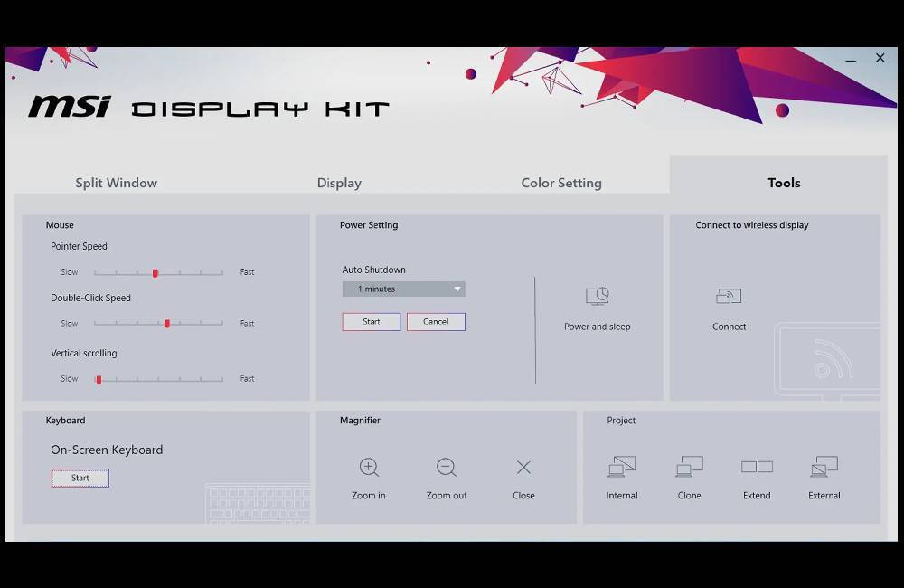 Το αποκλειστικό λογισμικό Display Kit της MSI προσφέρει το πιο πρακτικό εργαλείο για την καθημερινότητά σου. Παρέχει τις κατάλληλες ρυθμίσεις προβολής, ώστε να μπορείς να διαβάζεις και να απολαμβάνεις την εικόνα ταυτόχρονα, καθώς και επιλογές χρωματικής λειτουργίας που προσαρμόζονται στην εργασία ή τη χρήση σου κάθε μέρα.