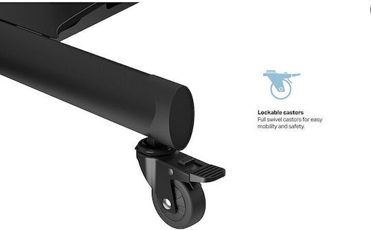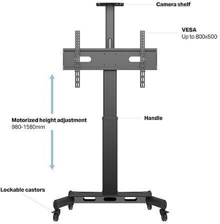 Η τοποθέτησή της γίνεται εύκολα σε δάπεδο, καθιστώντας την κατάλληλη για διάφορους χώρους, όπως σε αίθουσες συσκέψεων ή εκδηλώσεις. Η βάση υποστηρίζει Vesa Mount με διάσταση 800 x 500 χιλιοστά, εξασφαλίζοντας συμβατότητα με πολλές τηλεοράσεις στην αγορά.