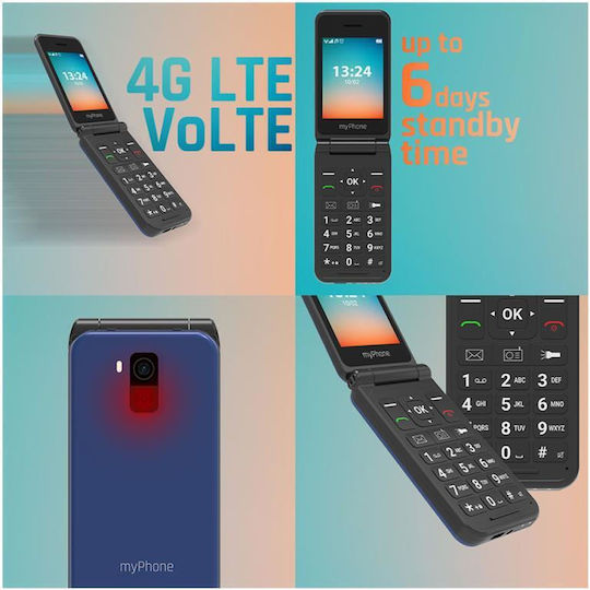 MyPhone Flip LTE Dual SIM Κινητό με Μεγάλα Κουμπιά Μπλε