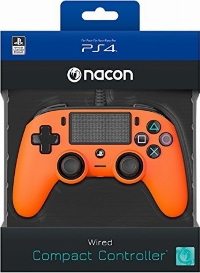 Ενσύρματο χειριστήριο για PS4. Περιλαμβάνει ένα πλήρως λειτουργικό touch pad και μοτέρ δόνησης για να αντιδρά σε στιγμές έντονης δράσης. Στο κάτω μέρος υπάρχει βύσμα jack 3.5 mm για την σύνδεση ακουστικών. Επιπλέον διαθέτει δείκτη LED που δηλώνει τον αριθμό παίκτη ανά χειριστήριο.