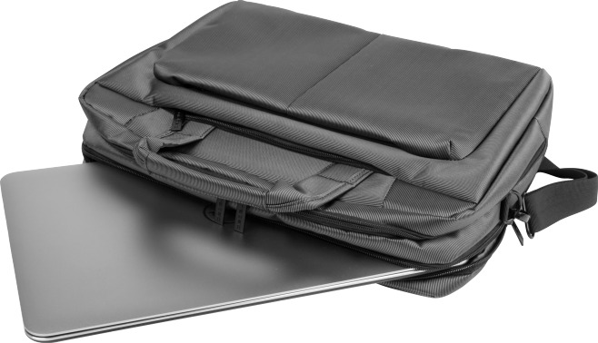 Το εσωτερικό χωρίζεται σε τρεις ευρύχωρες κύριες θήκες και πρόσθετες τσέπες στο μπροστινό μέρος. Η κύρια θήκη είναι ενισχυμένη με μαλακό αφρό και μπορεί να στερεωθεί με Velcro, εξασφαλίζοντας ασφαλή μεταφορά του φορητού υπολογιστή και των αξεσουάρ. Περιλαμβάνει επίσης πολλές τσέπες για ταξινόμηση άλλου εξοπλισμού ή εγγράφων.