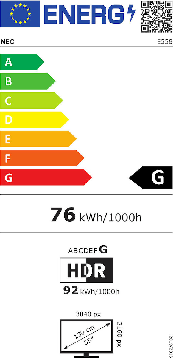 Nec E Series MultiSync E558 50 60Hz 100 240V 1210 X 680mm AAC LPCM MP3 Public Display IPS 4K UHD 54.6″ με USB Media Player