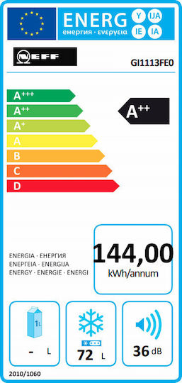 Neff Εντοιχιζόμενος Όρθιος Καταψύκτης 72lt GI1113FE0