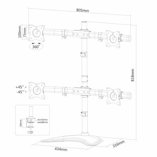 Neomounts Επιτραπέζια Βάση για 4 Οθόνες έως 27″ με Βραχίονα (NM-D335D4BLACK)
