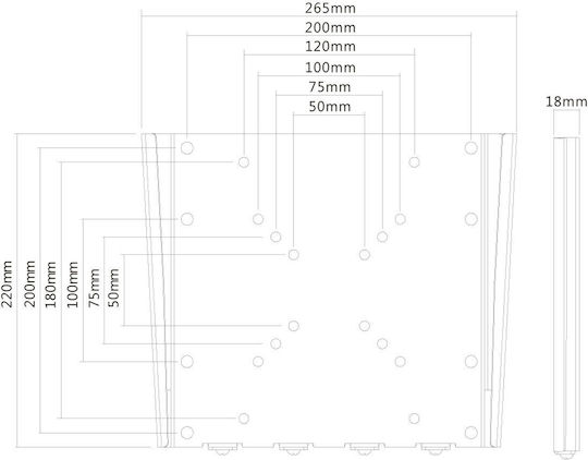 • VESA: 20 x 20 cm, 7,5 x 7,5 cm